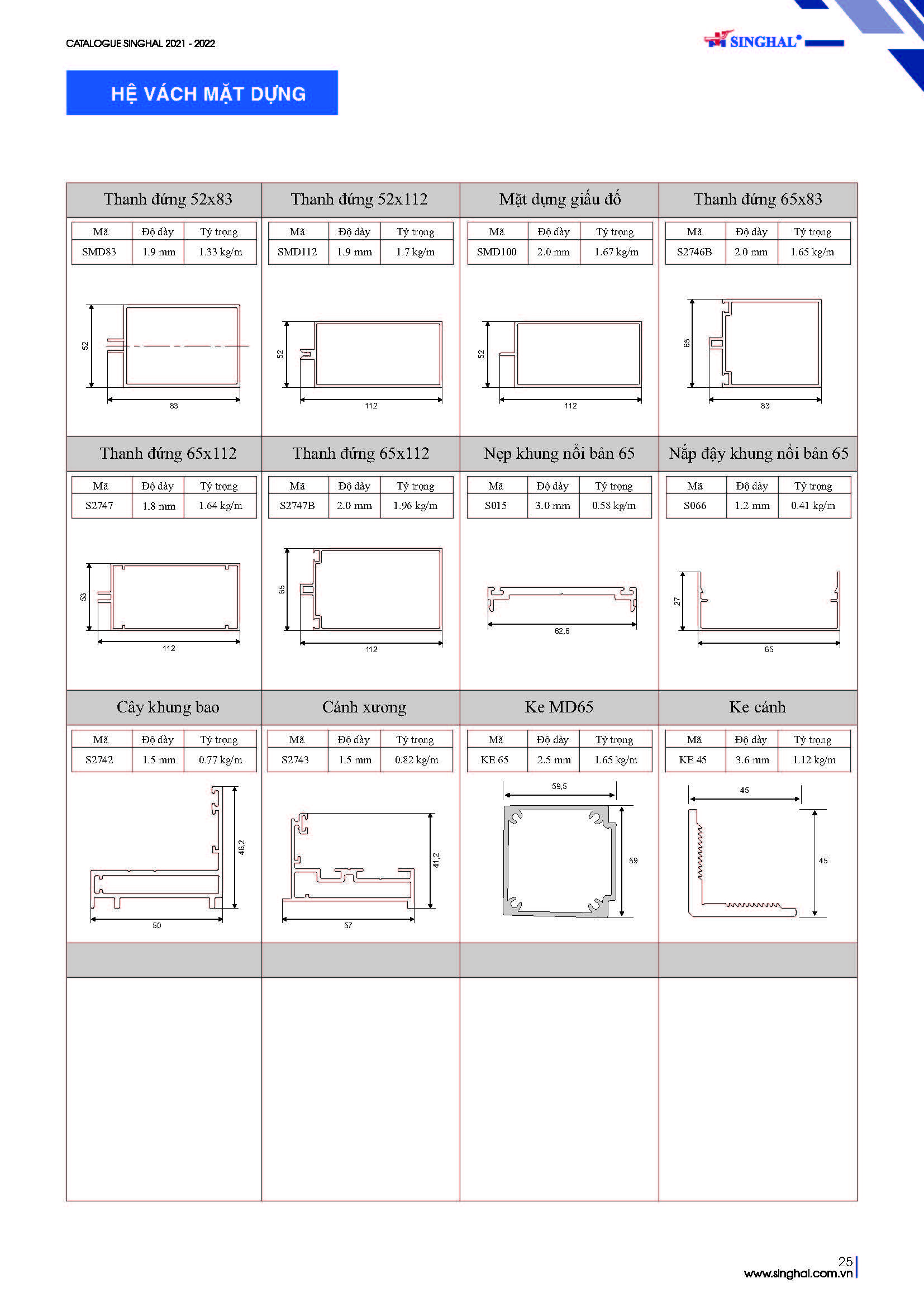 - Vách nhôm kính mặt dựng Singhal 65 được đánh giá cao, đạt tiêu chuẩn châu Âu, với nhiều ưu điểm vượt trội như: